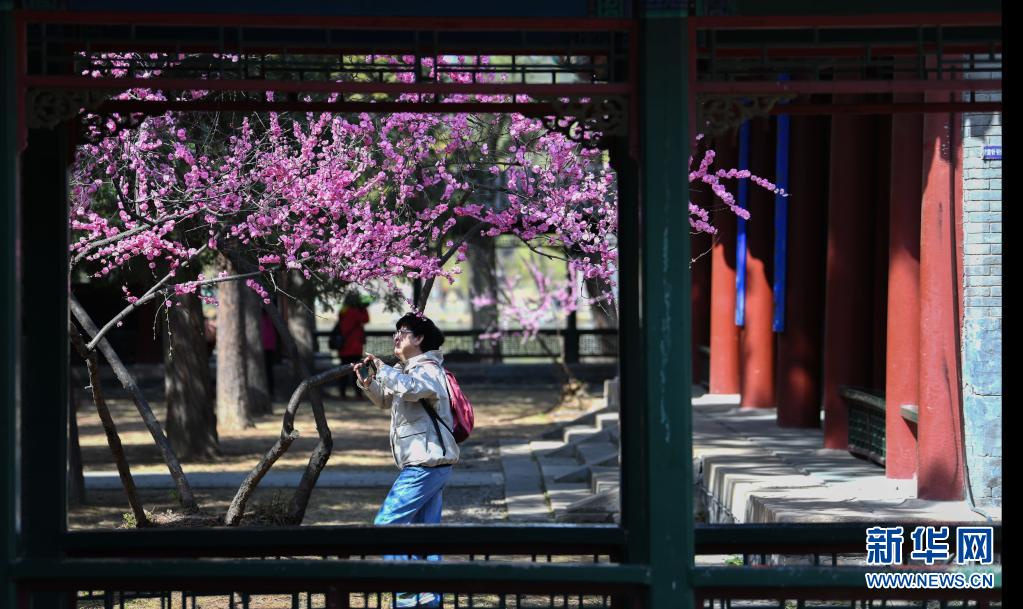 近期,河北承德避暑山莊景區內花紅柳綠,春光旖旎,盛開的春花與古典建筑相映成趣,吸引游客前來踏青游玩。