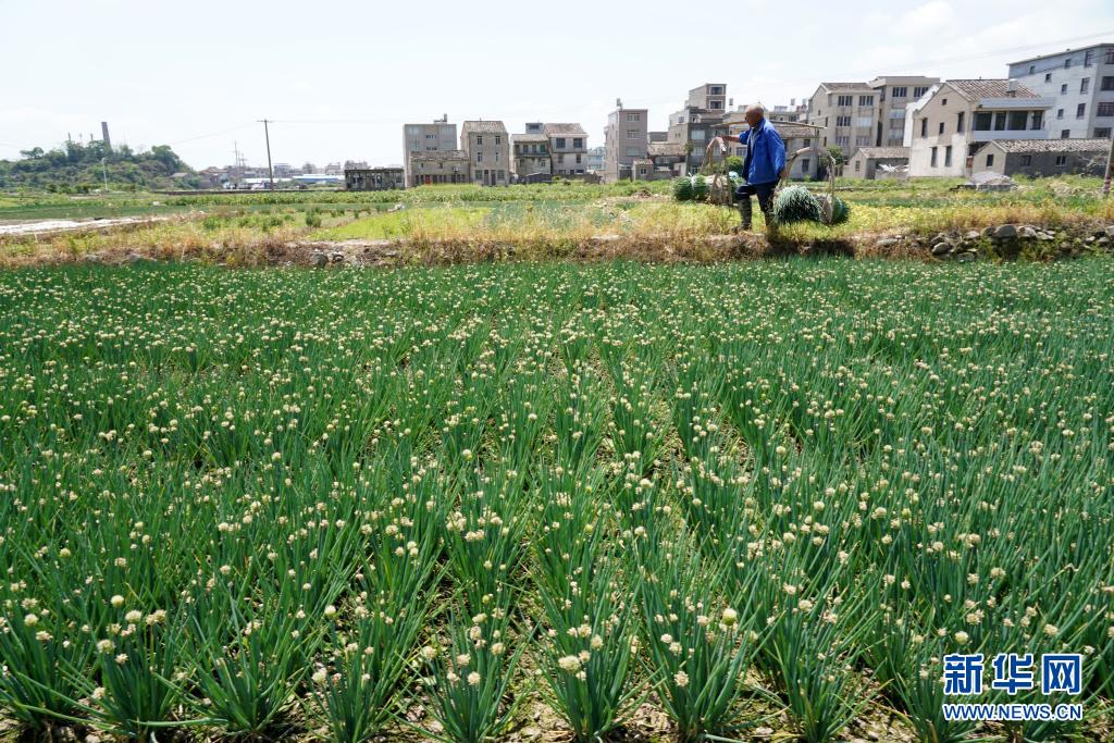 4月20日,浙江省樂清市雁蕩鎮的香蔥種植專業合作社社員在挑運剛采摘的香蔥。