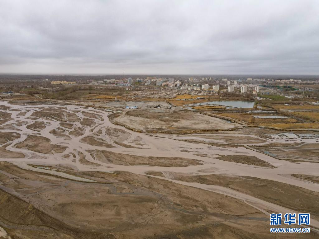 車爾臣河隔開了塔克拉瑪干沙漠與新疆且末縣城(3月31日攝 ,無人機(jī)照片)。新華社記者 高晗 攝