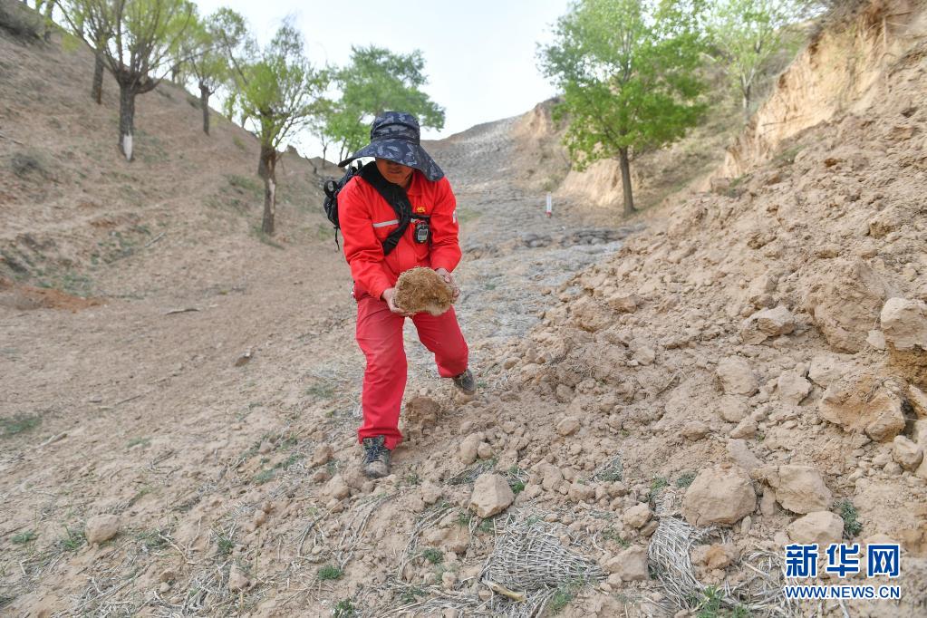 4月28日,巡線隊員侯勵峰在巡線途中對一處故障點進行維護。新華社記者 張博文 攝