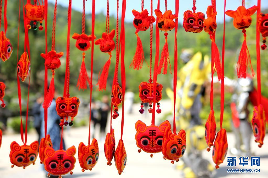5月1日,游人在山東省棗莊市孟莊鎮(zhèn)境內的龜山風景區(qū)內游玩。