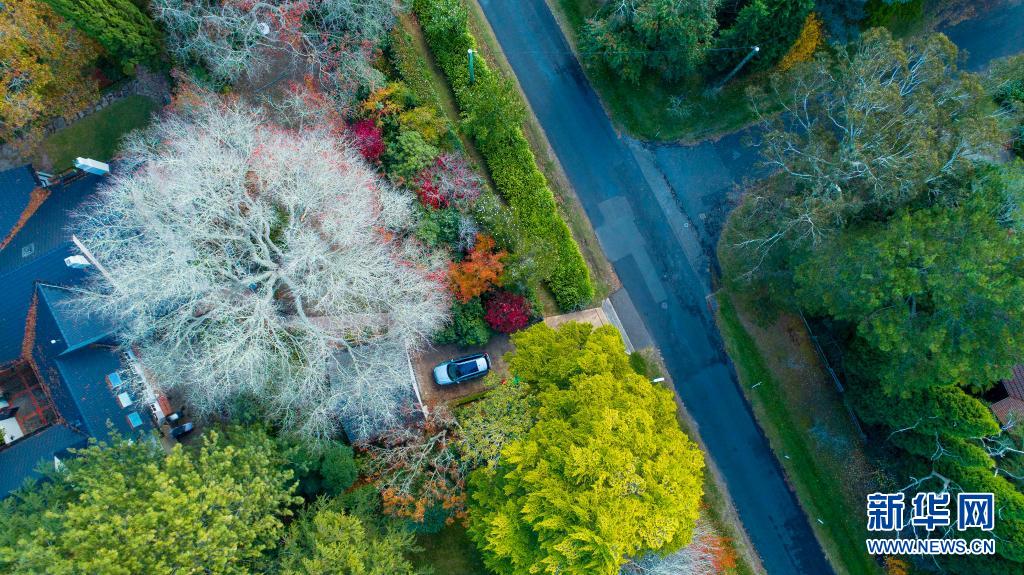 這是5月3日在澳大利亞悉尼西部藍山地區(qū)拍攝的多彩的街道(無人機拍攝)。