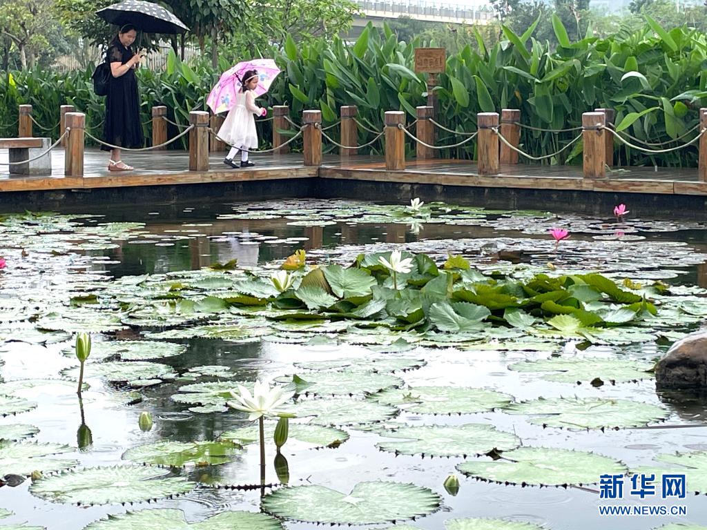 立夏時(shí)節(jié),廣西南寧市那考河濕地公園內(nèi)草木吐翠、鮮花斗艷,一派繁茂景象。