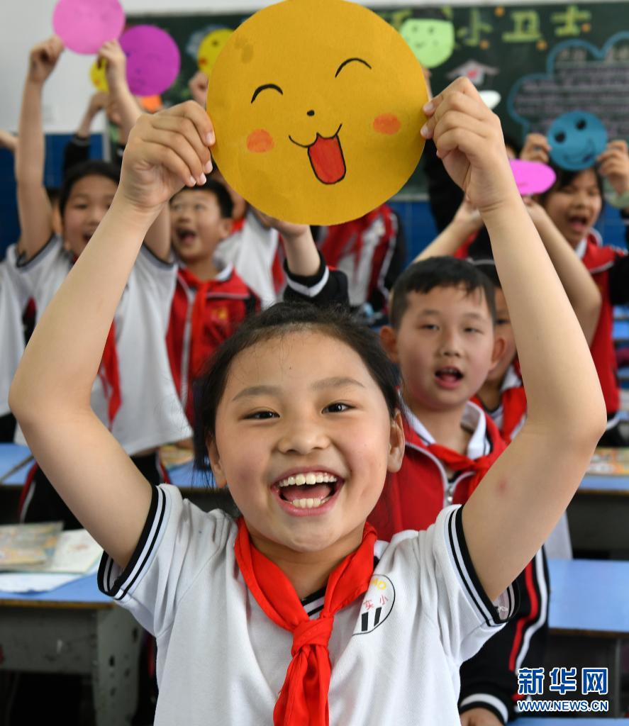 5月7日,湖北省宜昌市秭歸縣實驗小學(xué)的學(xué)生展示自己制作的笑臉。世界精神衛(wèi)生組織將每年的5月8日定為“世界微笑日”,希望通過微笑促進人類身心健康,增進社會和諧。新華社發(fā)(王輝富 攝)
