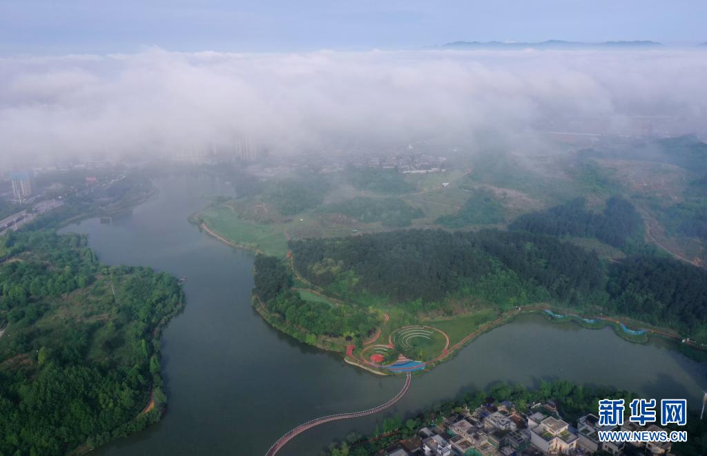 5月8日,貴陽(yáng)市觀山湖區(qū)閱山湖公園景色怡人(無(wú)人機(jī)照片)。