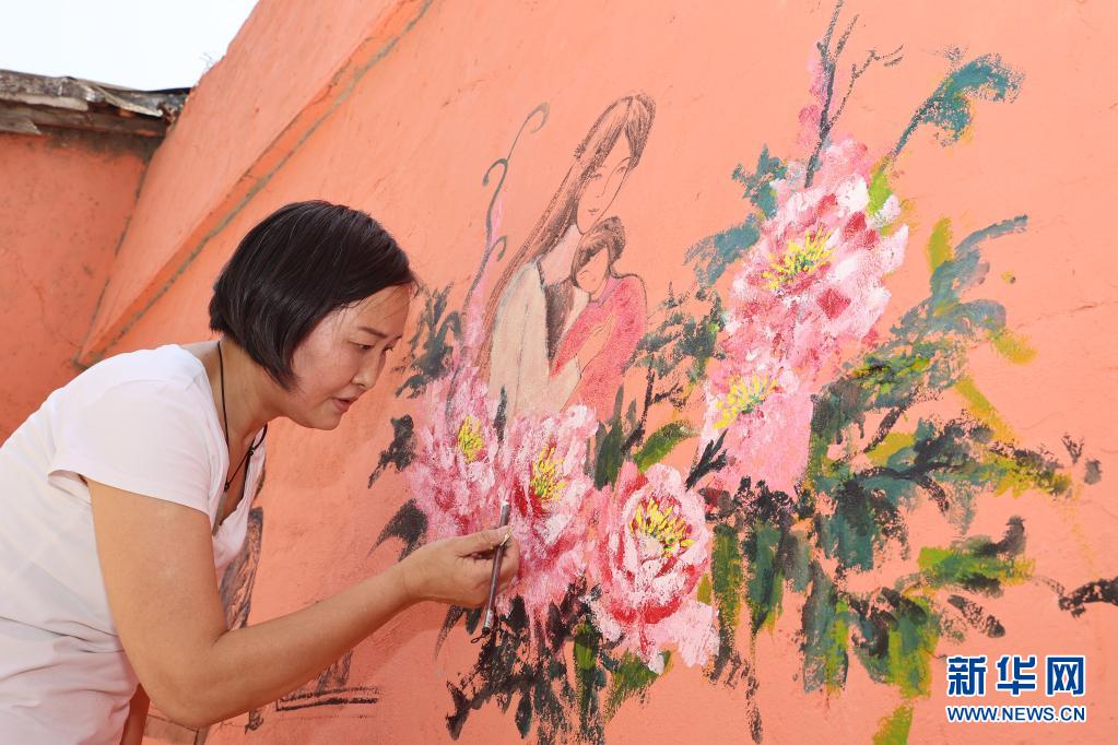 5月9日,江蘇省無錫市梁溪區北大街街道黃巷社區開展“百年母親形象”主題彩繪活動,志愿者在墻上繪制母親形象圖案。