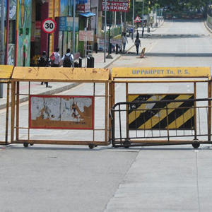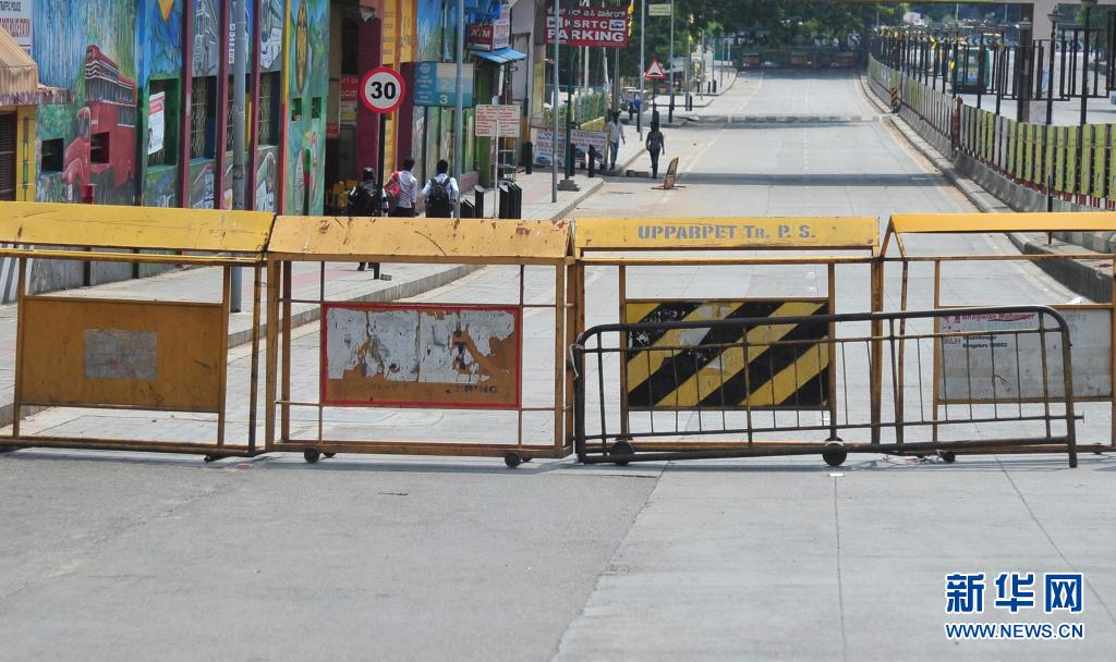 5月10日,印度卡納塔克邦首府班加羅爾一條道路被路障封鎖。
