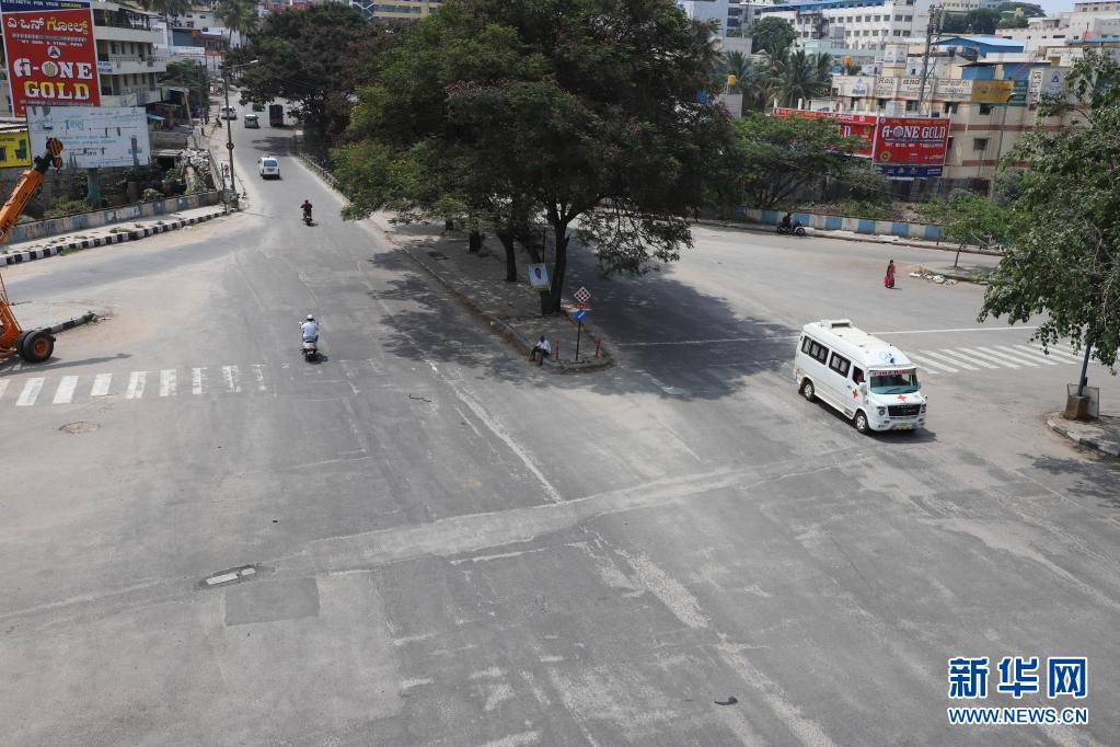 這是5月10日在印度卡納塔克邦首府班加羅爾拍攝的“封城”后街頭行人寥寥。