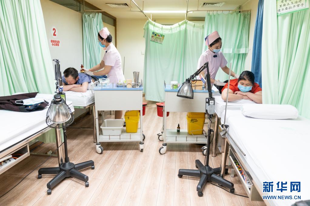 5月10日,在北京按摩醫院,夜班護士為患者做中醫護理治療。