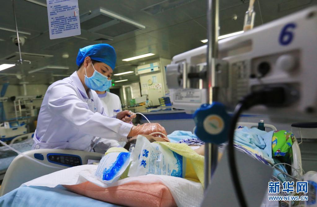 5月11日,在貴州省畢節市第一人民醫院重癥醫學科病房,一名護士對患者進行護理。