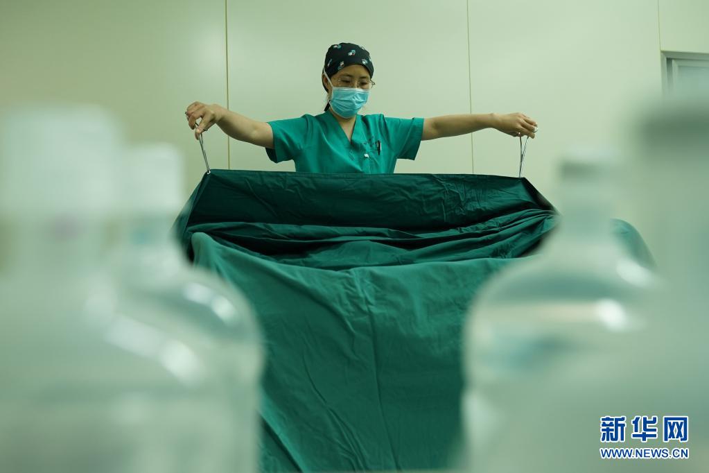 5月11日,河北省邢臺市巨鹿縣醫院手術室護士在做術前準備。