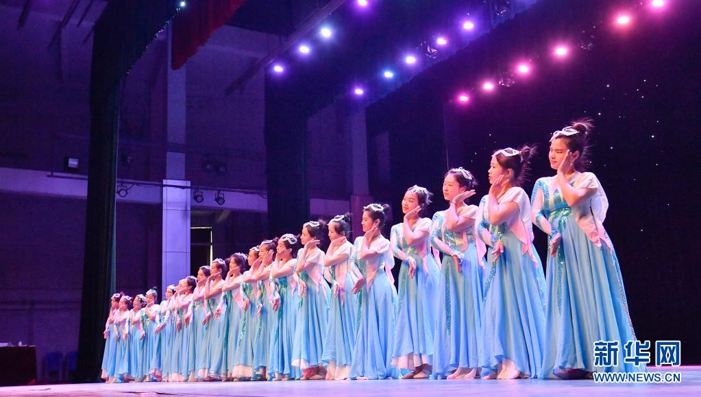 天津理工大學(xué)聾人工學(xué)院的舞蹈隊員們在學(xué)校的劇場里進行彩排(5月10日攝)。