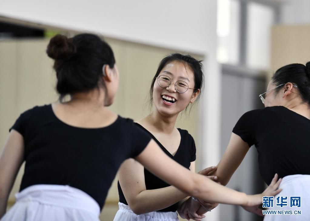 天津理工大學聾人工學院的舞蹈隊員們在排練期間交流(5月8日攝)。新華社記者 趙子碩 攝