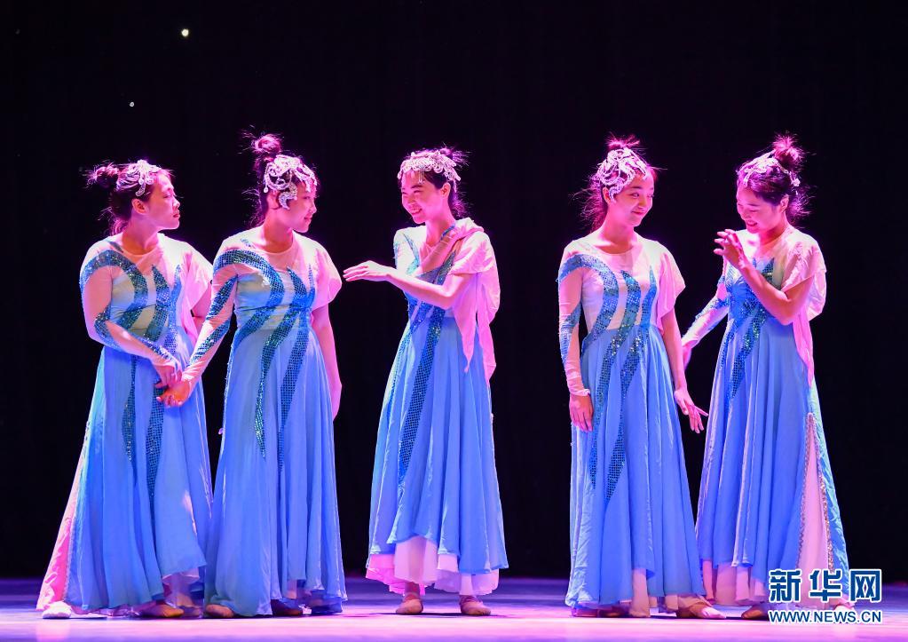 在天津理工大學的劇場里,天津理工大學聾人工學院的舞蹈隊員們在彩排間隙用手語交流(5月10日攝)。新華社發(孫凡越攝)