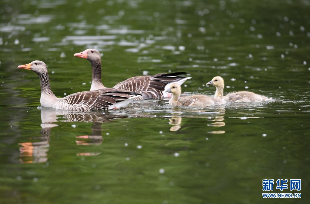 這是5月19日在德國法蘭克福的美茵河拍攝的灰雁。