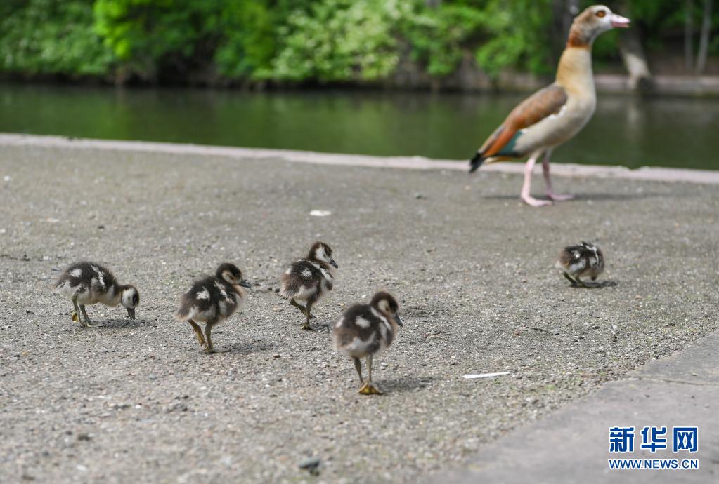 近日,德國法蘭克福市天氣逐漸轉暖,棲息在美茵河畔的水禽紛紛孵化出雛鳥。