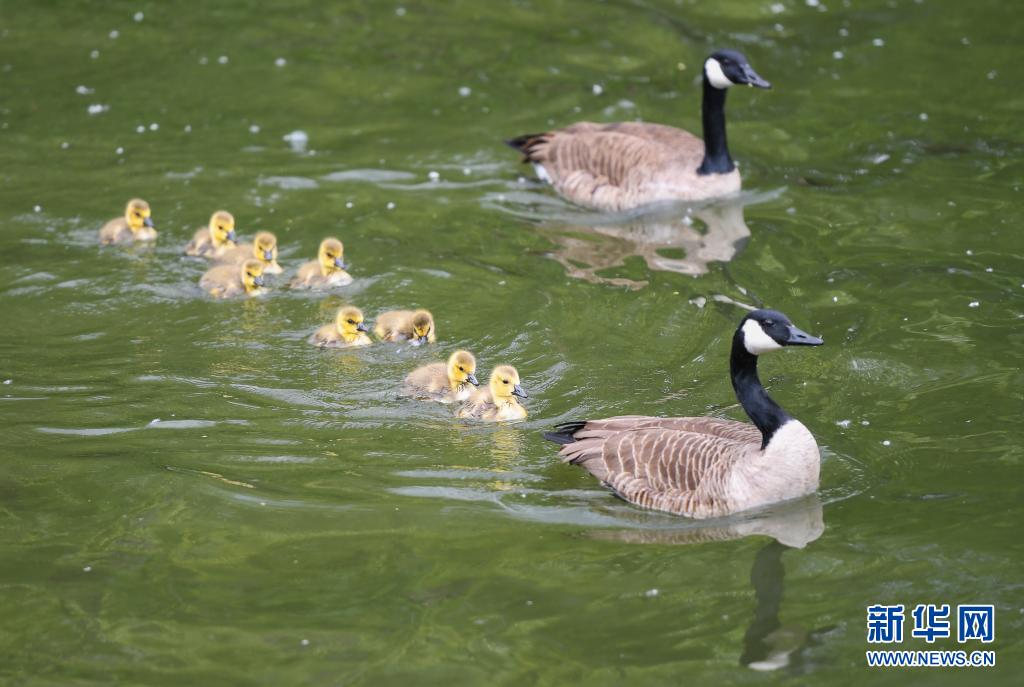 近日,德國法蘭克福市天氣逐漸轉暖,棲息在美茵河畔的水禽紛紛孵化出雛鳥。