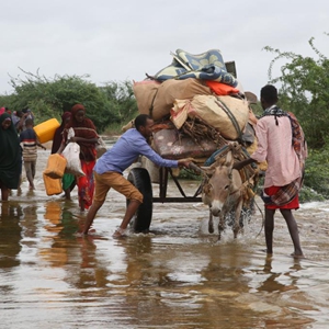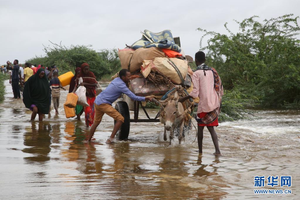 強(qiáng)降雨導(dǎo)致索馬里多地洪水泛濫。新華社發(fā)(哈桑·巴希攝)