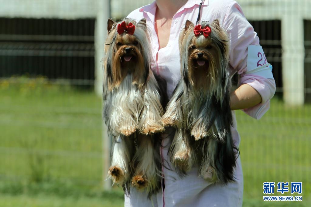 5月23日,兩只寵物犬在羅馬尼亞首都布加勒斯特參加選美比賽。新華社發(克里斯泰爾攝)