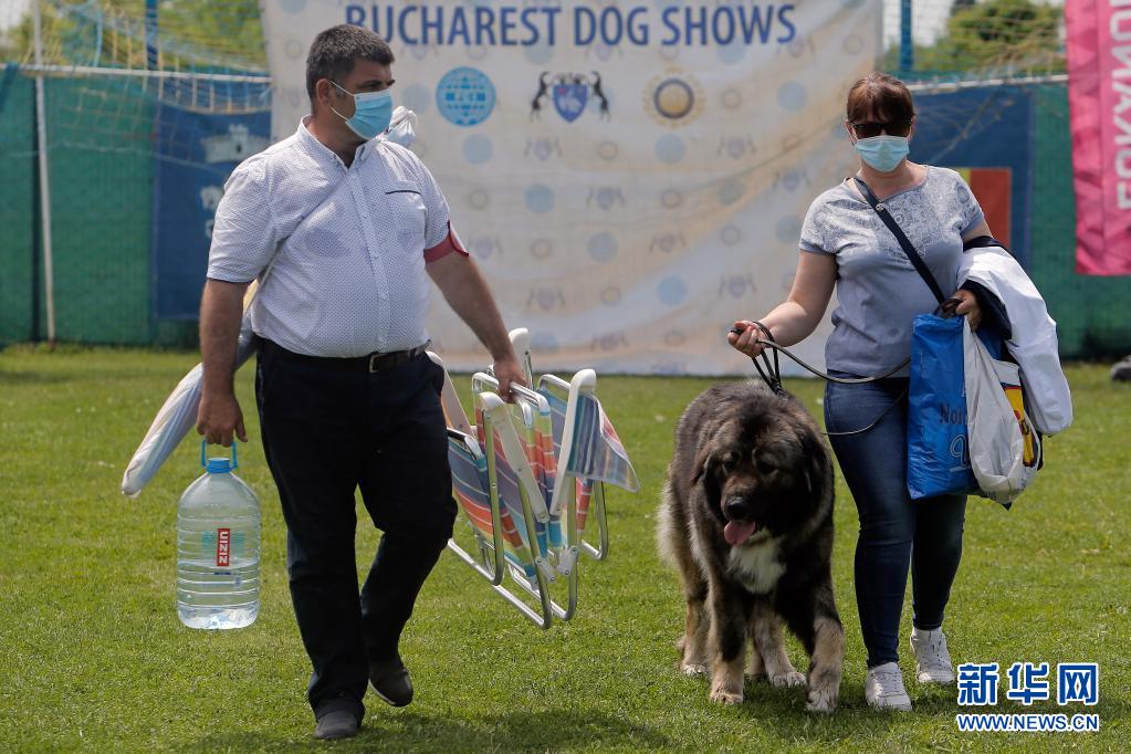 5月23日,一只寵物犬在羅馬尼亞首都布加勒斯特參加選美比賽后隨主人離開(kāi)。新華社發(fā)(克里斯泰爾攝)