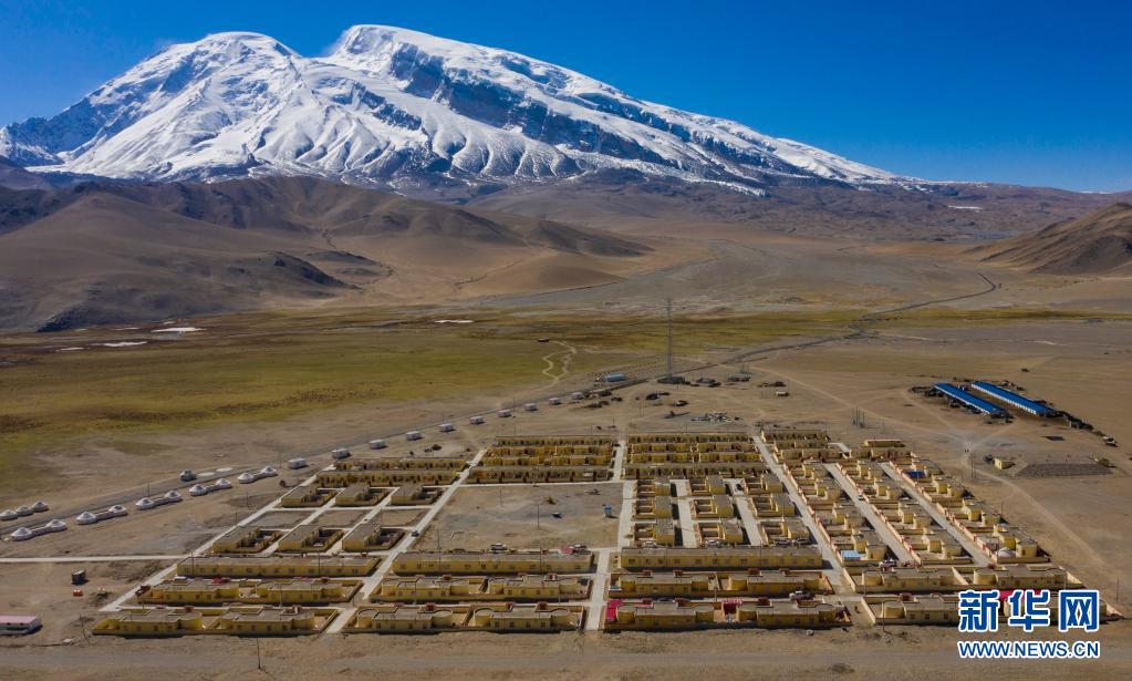 “冰山之父”慕士塔格峰腳下的新疆阿克陶縣布倫口鄉蘇巴什村三小隊(5月17日攝,無人機照片)。別克米爾扎·圖爾達力的家就在這個村莊。新華社記者 胡虎虎 攝