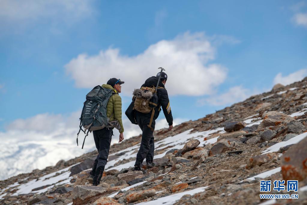 別克米爾扎·圖爾達(dá)力(右)和同伴庫爾班巴依·努爾麥麥提在進(jìn)行適應(yīng)性練習(xí)(5月15日攝)。新華社記者 胡虎虎 攝