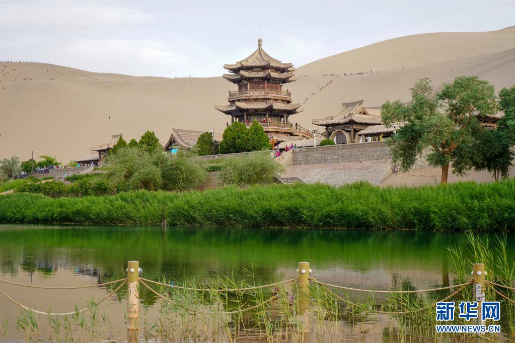 時下,位于甘肅省敦煌市的月牙泉碧波蕩漾,吸引不少游客前來觀光。