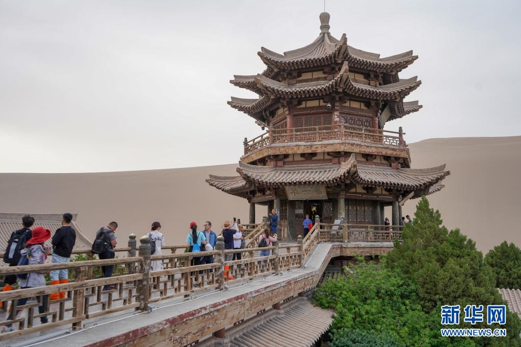 時下,位于甘肅省敦煌市的月牙泉碧波蕩漾,吸引不少游客前來觀光。