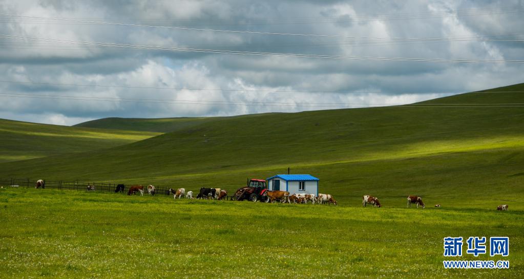 這是內(nèi)蒙古呼倫貝爾332國道旁的草原風(fēng)光(6月10日攝)。