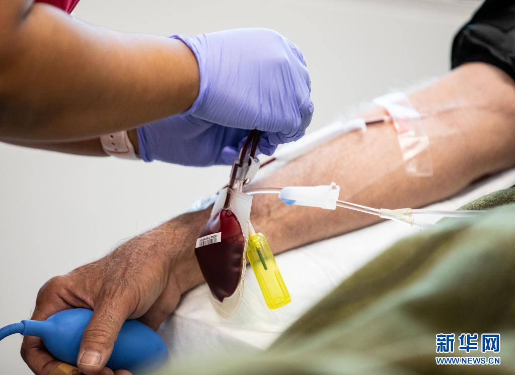6月14日,在美國芝加哥,一名獻血志愿者在大芝加哥地區紅十字會一獻血站內獻血。新華社發(喬爾·萊納攝)