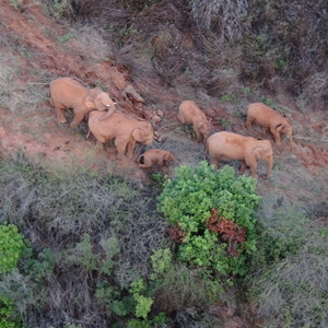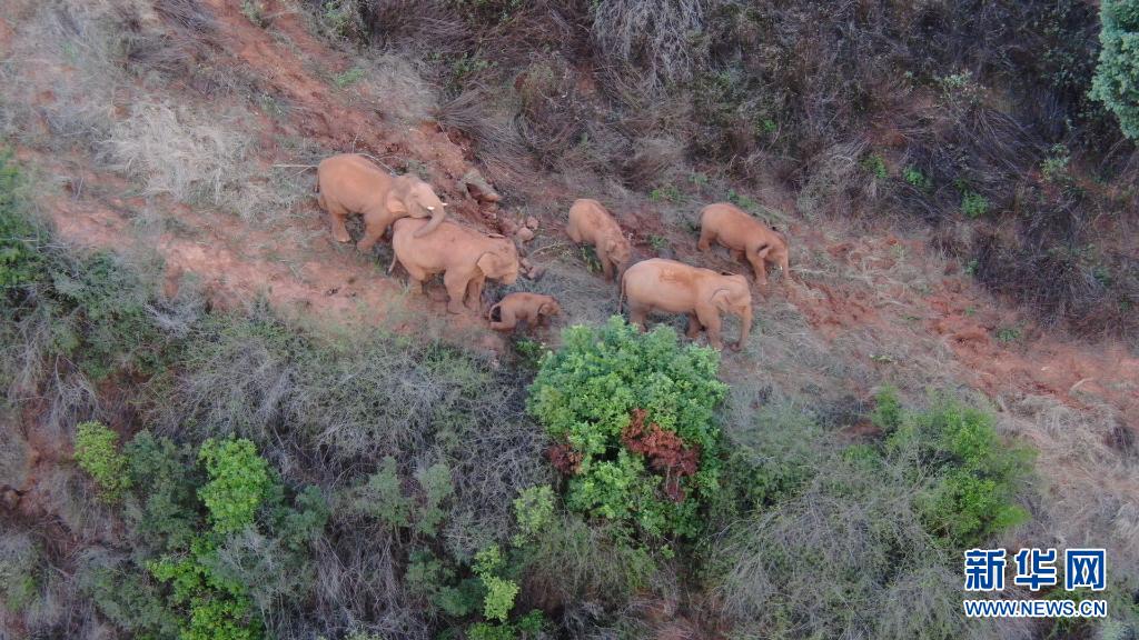 6月15日在玉溪市易門縣十街鄉(xiāng)拍攝的象群(無人機(jī)照片)。新華社發(fā)(云南省森林消防總隊供圖)