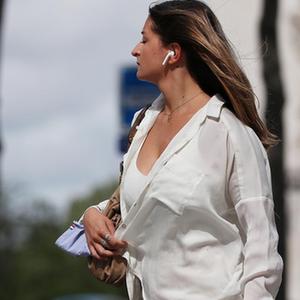 6月17日,一名女子手拎口罩走在法國巴黎香榭麗舍大街上。