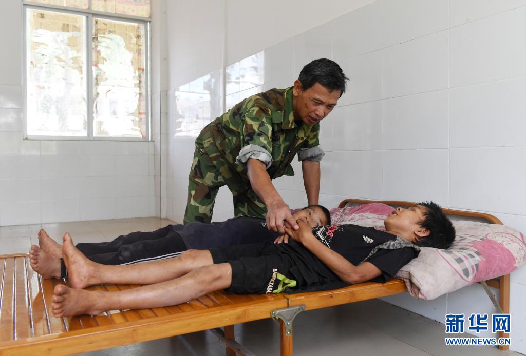 在廣西上思縣那琴鄉中心小學逢通村教學點,梁志雄老師在照顧兩名學生睡午覺(6月16日攝)。新華社記者 陸波岸 攝