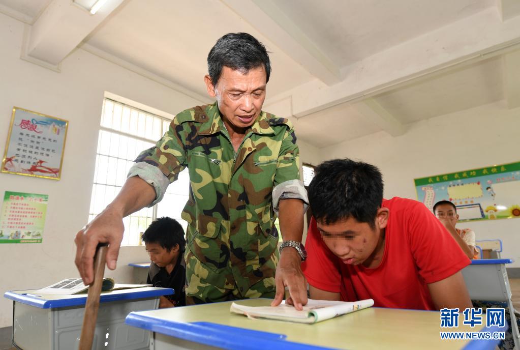 在廣西上思縣那琴鄉中心小學逢通村教學點,梁志雄老師在輔導學生(6月16日攝)。新華社記者 陸波岸 攝