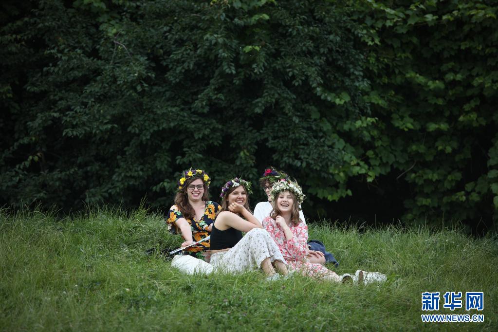 6月26日,女孩們佩戴花冠在波蘭首都華沙參加夏日文化娛樂活動。