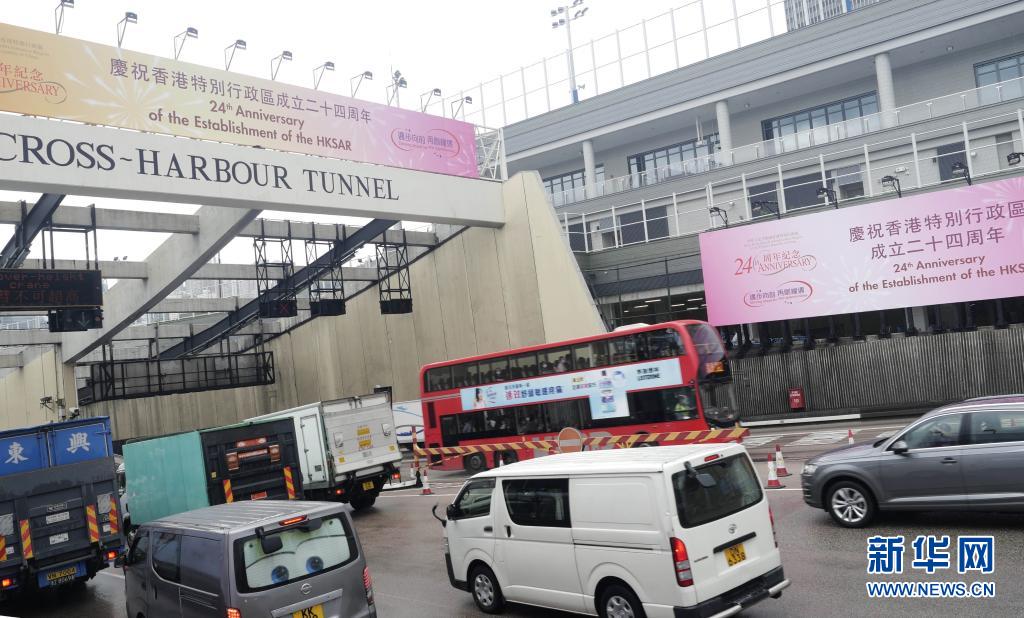 6月29日拍攝的香港紅磡海底隧道港島出入口的海報。