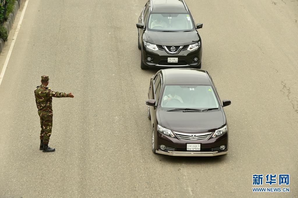 7月1日,軍人在孟加拉國(guó)達(dá)卡的街道上攔停過往車輛。
