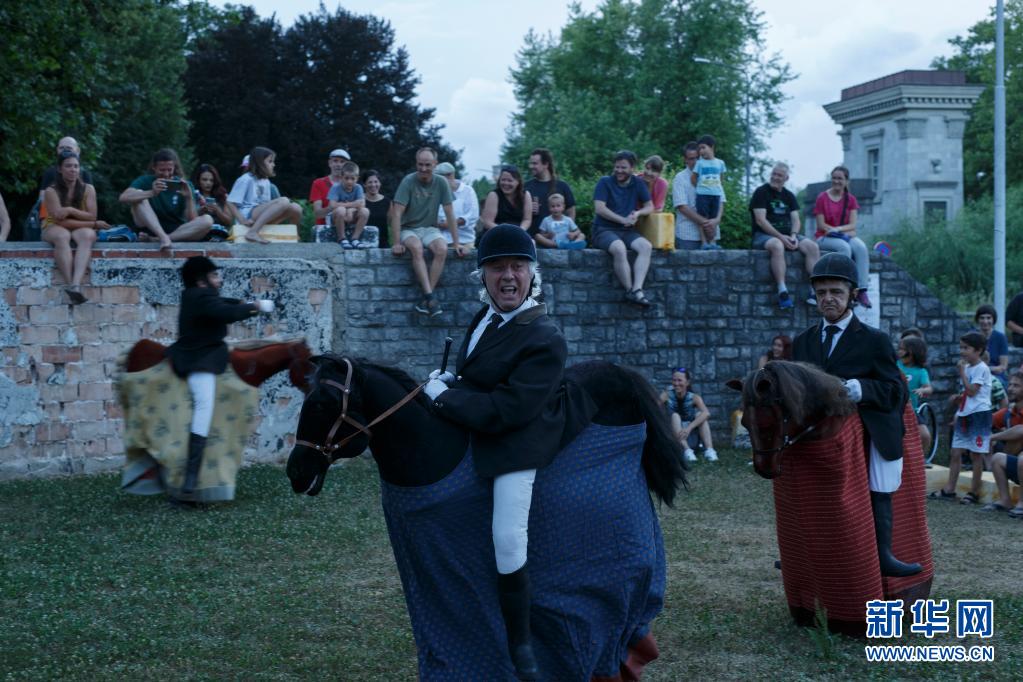 6月30日傍晚,藝術工作者在斯洛文尼亞首都盧布爾雅那進行街頭戲劇節表演。