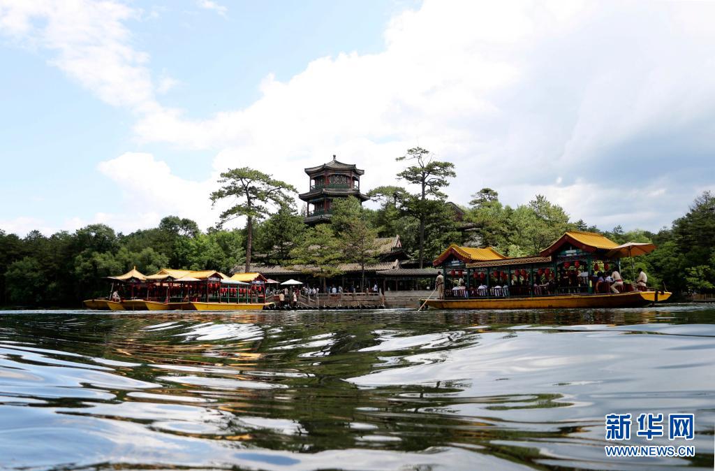 當日,連續降雨過后的河北省承德市天氣晴朗,世界文化遺產承德避暑山莊在藍天白云映襯下景美如畫。