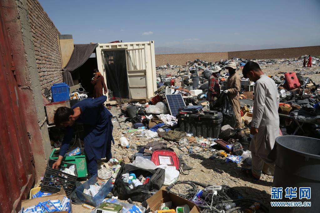 7月3日,在阿富汗帕爾萬省的巴格拉姆空軍基地附近,當地居民在美軍遺留下的物品中回收廢舊物。