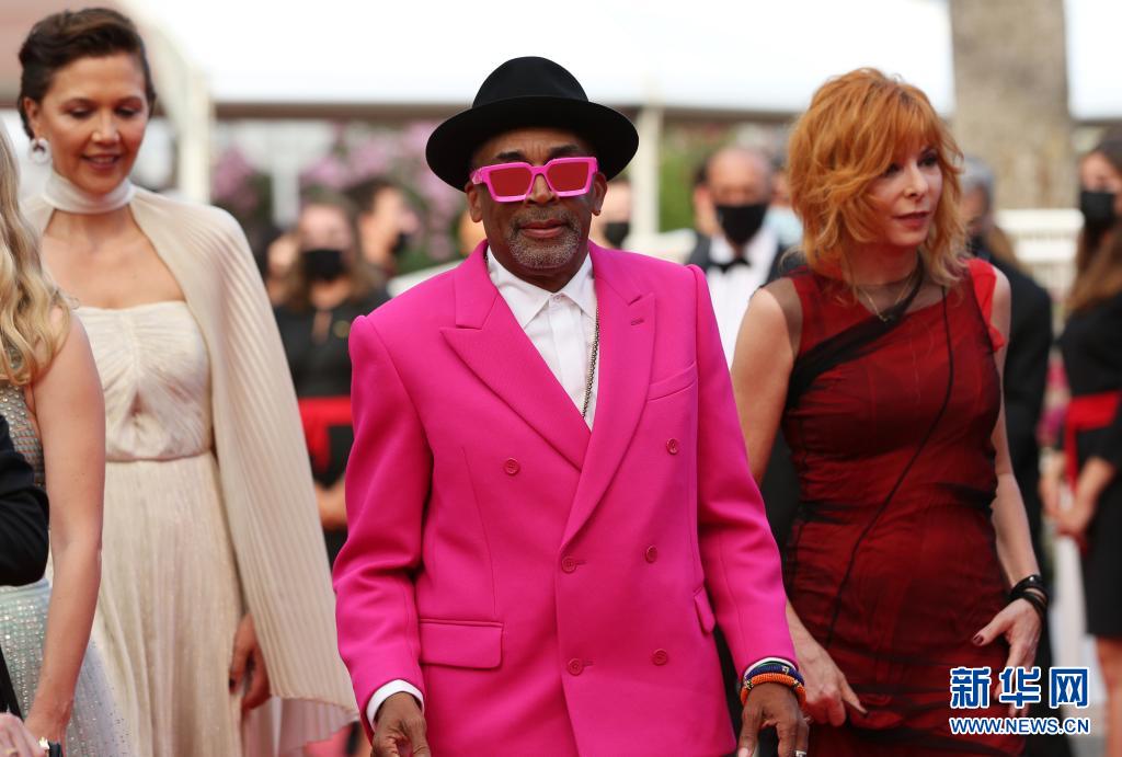 7月6日,第74屆法國戛納國際電影節(jié)主競賽單元評委會主席、美國導演和制片人斯派克·李(中)攜主競賽單元評委出席開幕式紅毯。