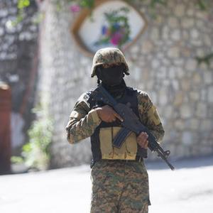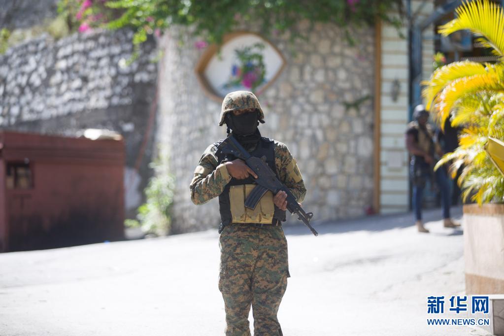 7月7日,在海地太子港,一名士兵在海地總統莫伊茲的住所旁執勤。