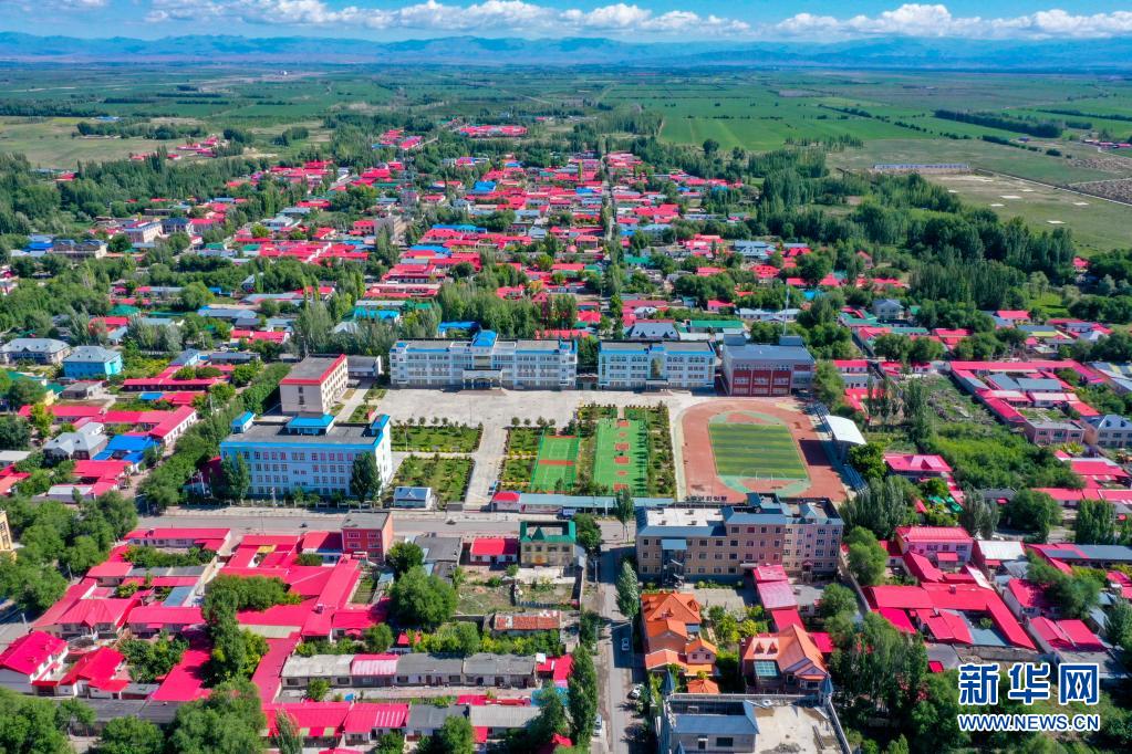 這是杜寶柱任教的新疆塔城地區塔城市第二小學(6月12日攝,無人機照片)。