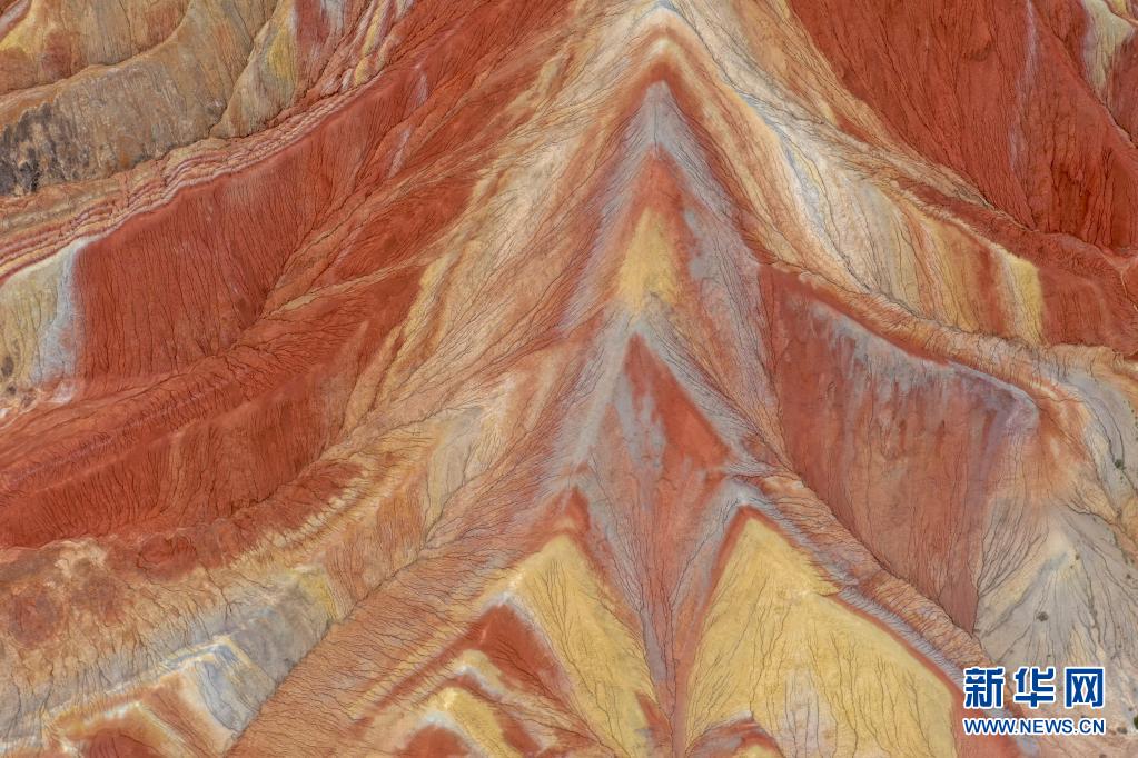 張掖世界地質公園的一處彩色丘陵地貌景觀(7月14日攝,無人機照片)。