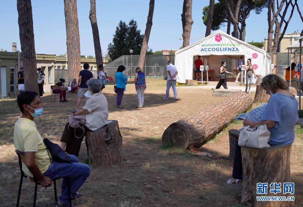 7月21日,人們在意大利羅馬一處新冠疫苗接種中心等待登記。
