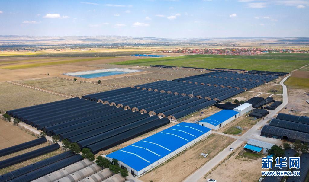 寧夏吳忠市同心縣下馬關鎮南安村閩寧協作菌菇種植基地(6月23日攝,無人機照片)。新華社記者 楊植森 攝