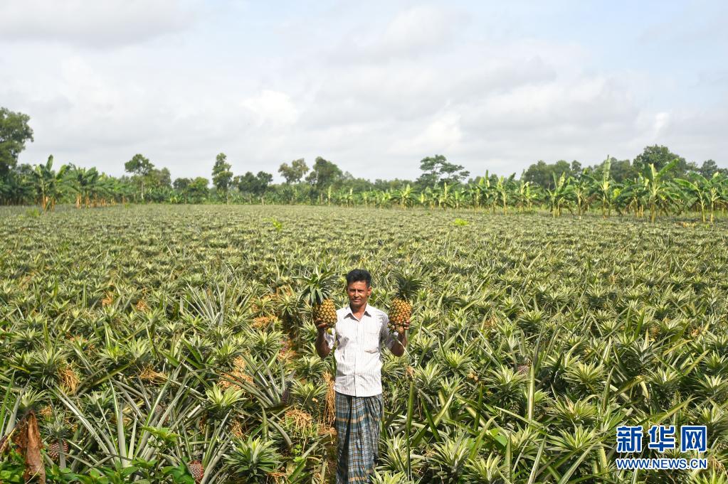7月25日,一名男子在孟加拉國坦蓋爾展示收獲的菠蘿。