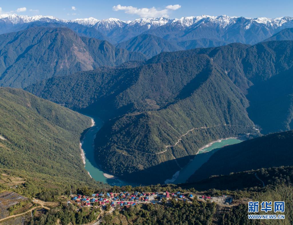 這是2月9日拍攝的位于雅魯藏布江邊的林芝市墨脫縣德興鄉(xiāng)巴登則村(無人機(jī)照片)。