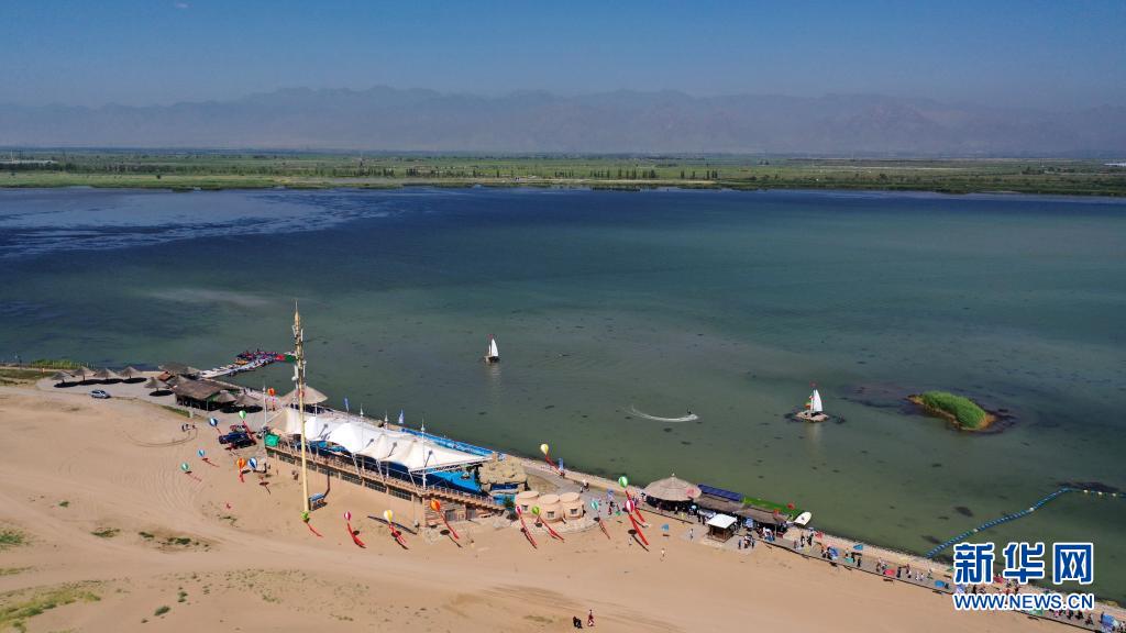 這是7月31日拍攝的寧夏沙湖景區(無人機照片)。