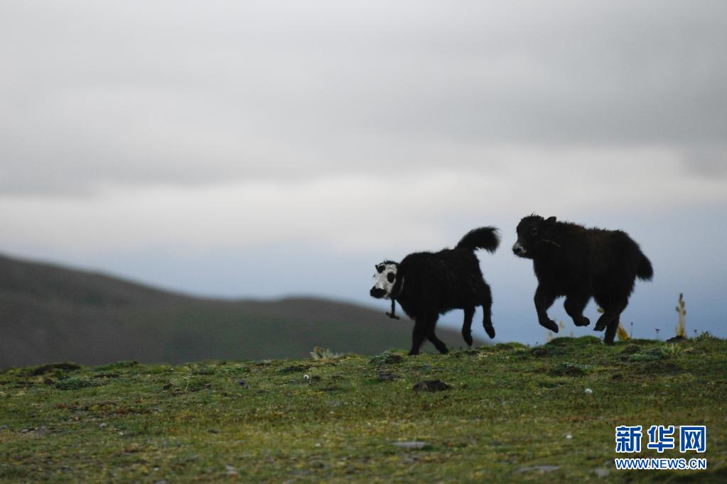 這是8月3日在瑪沁縣當洛鄉貢龍村的夏季草場上拍攝的牦牛犢。
